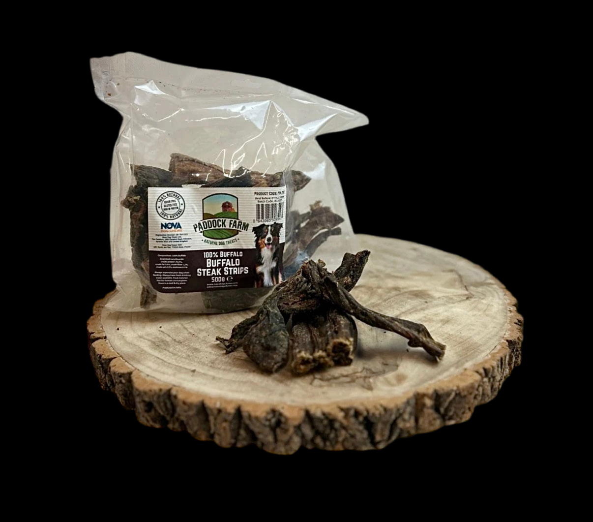 Buffalo meat is naturally leaner than beef or pork, offering a healthier alternative while still providing essential B vitamins, calcium, potassium, and Vitamin D to support energy levels, bone strength, and immune function. The chewing action helps promote dental health by reducing plaque and tartar buildup.